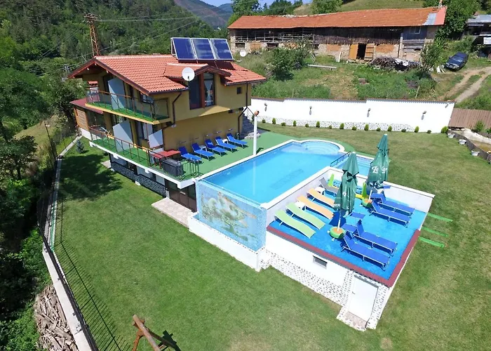 The 6-room Kesta Za Gosti Suni Trans Villa is situated within a 10-minute drive of Ustovo and offers a swimming pool as well as a sauna for guests to unwind. Featuring garden views, this 5-bedroom villa invites guests to visit Regional History Museum Stoyu Shishkov, located nearly 10 minutes away by car.